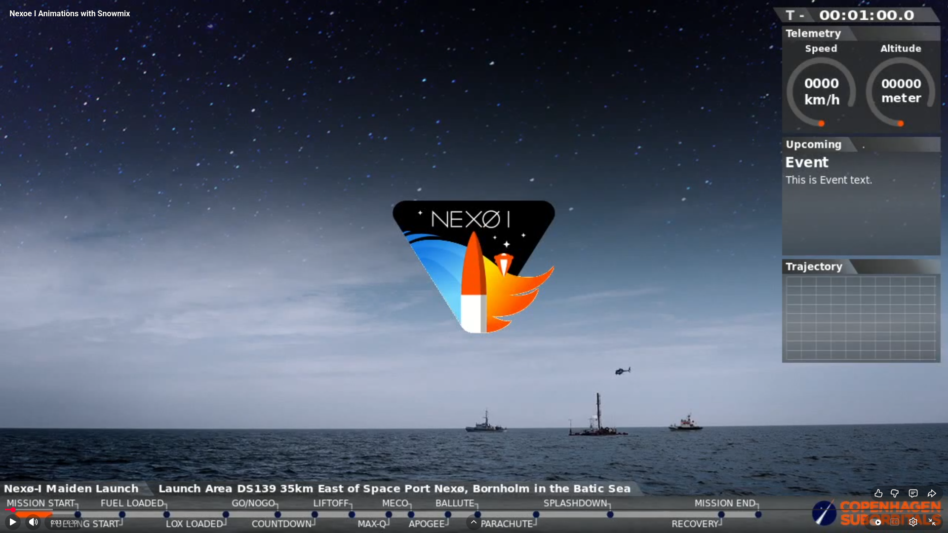 From Live TV Production for Copenhagen Suborbitals February 2016. Upper left in the frame is running an AIS based ship position plotter program (no ships shown). Down left is running a video from CS LES test. Main frame to the right is displaying astronaut Andreas Mogensen in the cupola onboard the International Space Station sending greetings and good luck to Copenhagen Suborbitals.